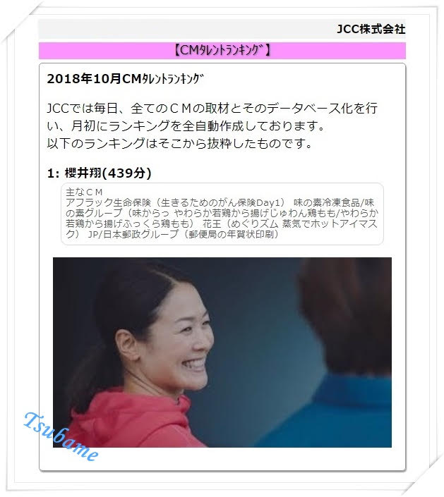 Tsubame S Blog Sho Sakurai 櫻井翔 翔君成為 Jcc Cm 藝人演出時間 Ranking 第1 位
